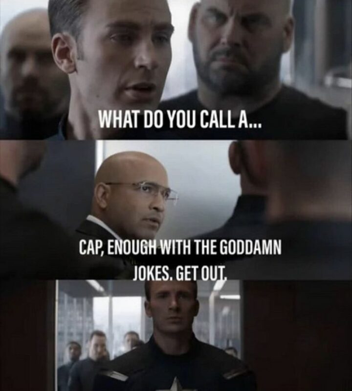 “What do you call a…Cap, enough with the goddamn jokes. Get out.”