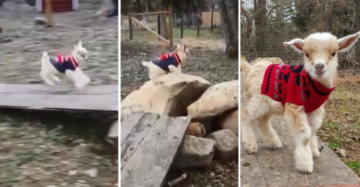 This cute little fella is having the best time of his life jumping around in his tiny sweater and he isn’t afraid to show us that he is one happy goat. Twitter users Goats of Anarchy recently posted some videos of Baby Prospect jumping around and having fun and they even have one where he’s all tuckered out and falling asleep.