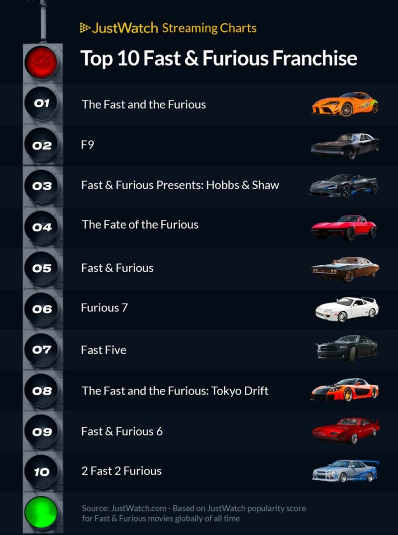 JustWatch Streaming Charts: Top 10 Best Fast & Furious Franchise Movies