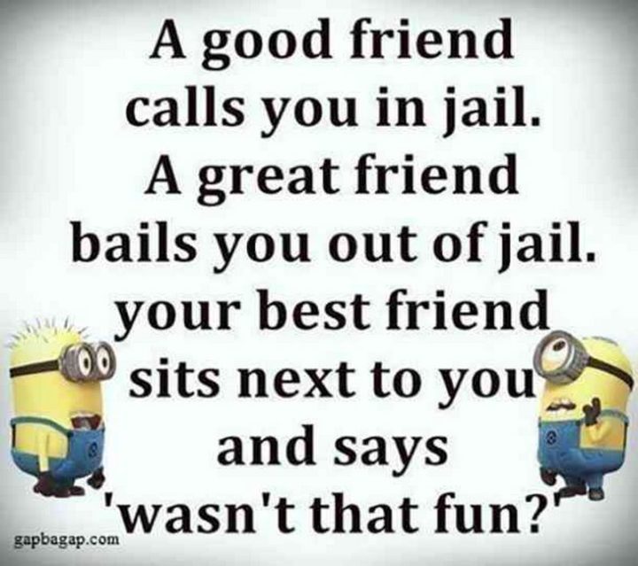 “A good friend calls you in jail. A great friend bails you out of jail. Your best friend sits next to you and says ‘wasn’t that fun?’.”