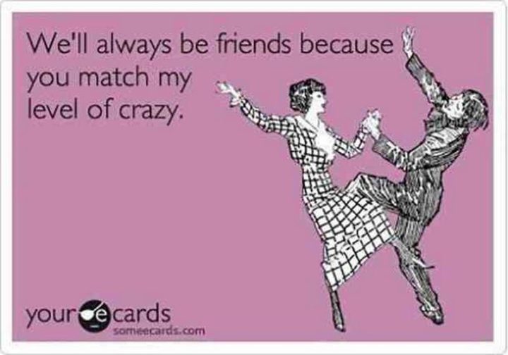“We’ll always be friends because you match my level of crazy.”