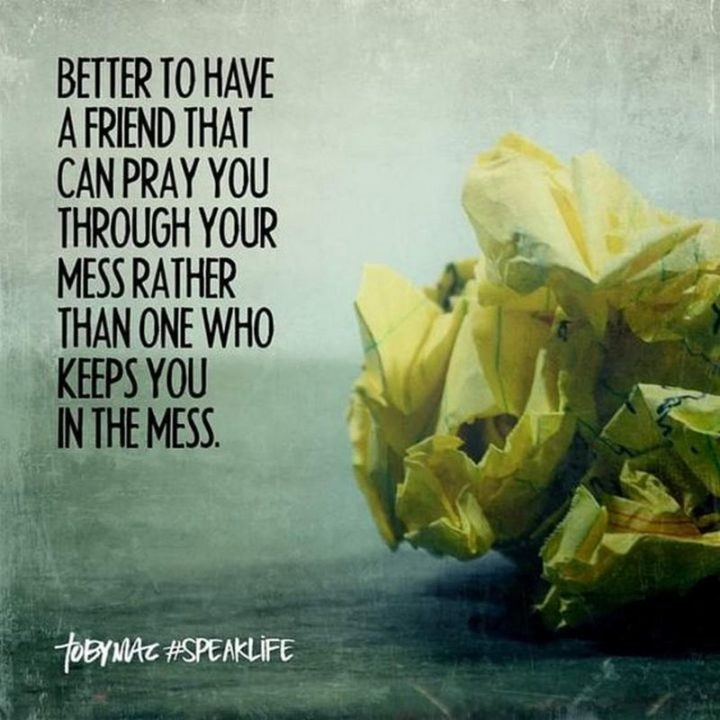“Better to have a friend that can pray you through your mess rather than one who keeps you in the mess.”