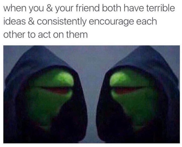 “When you and your friend both have terrible ideas and consistently encourage each other to act on them.”