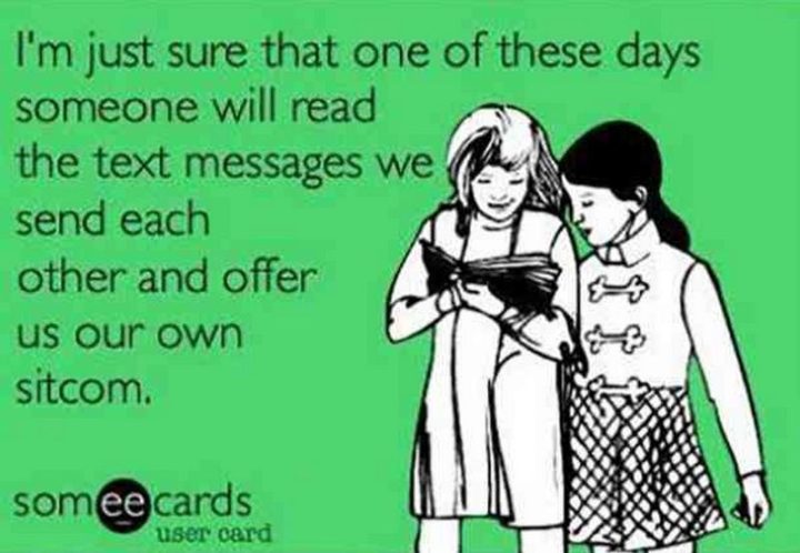 “I’m just sure that one of these days someone will read the text messages we send each other and offer us our own sitcom.”