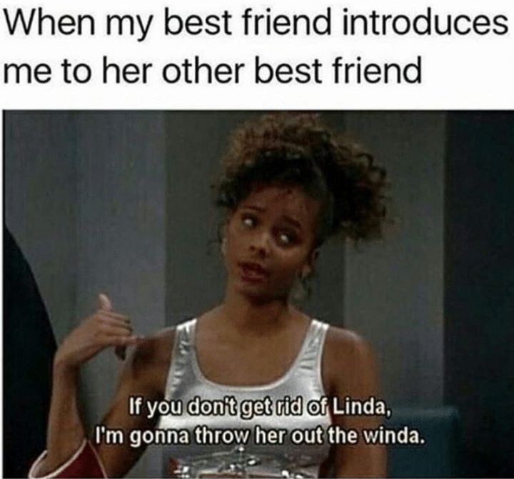 “When my best friend introduces me to her other best friend: If you don’t get rid of Linda, I’m gonna throw her out the winda.”