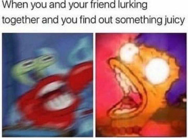 “When you and your friend lurking together and you find out something juicy.”