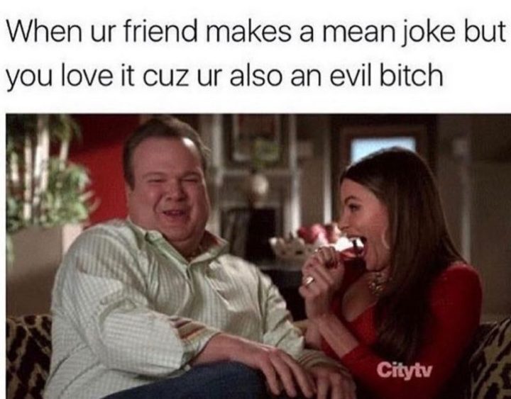 “When ur friend makes a mean joke but you love it cuz ur also an evil b***h.”
