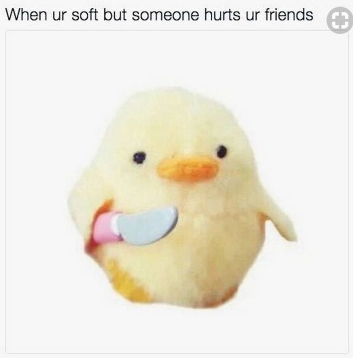 “When ur soft but someone hurts ur friends.”
