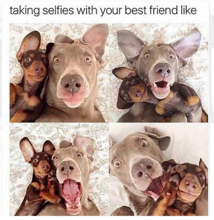 “Taking selfies with your best friend like…”