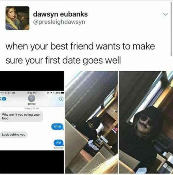 “When your best friend wants to make sure your first date goes well.”