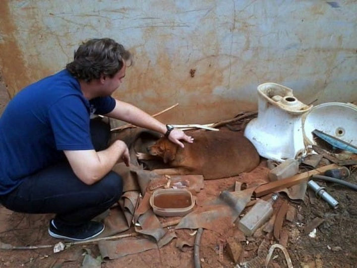 The animal rescuer was from a nearby town and vowed to help change the dog’s life.