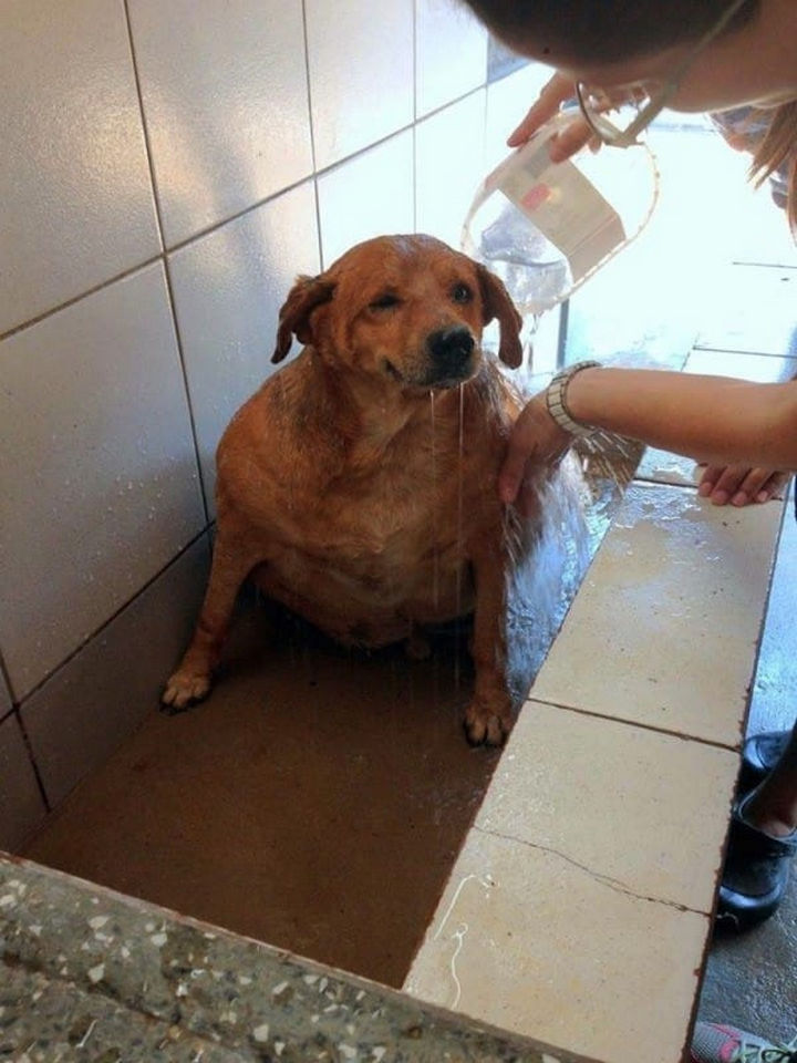 He brought him to the Animal Protection Organization (OPA-MT) where he knew he would get the care he needed. For the first time in 13 years, Bolinha was treated to a warm bath and he seems to love it!