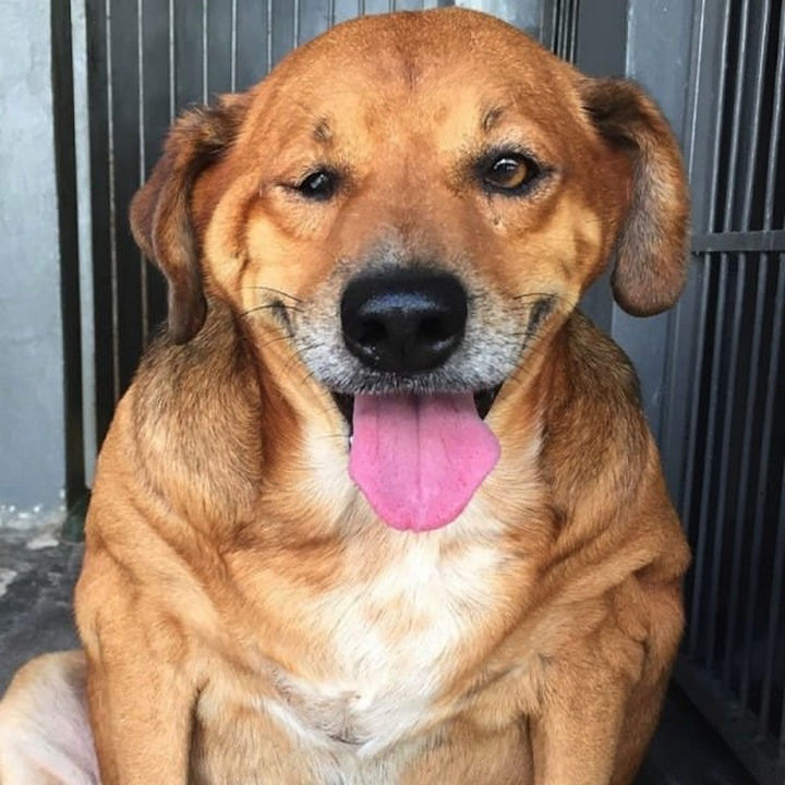 A stray dog named Bolinha has been abandoned for over 13 years and lived outside a gas station in Brazil.
