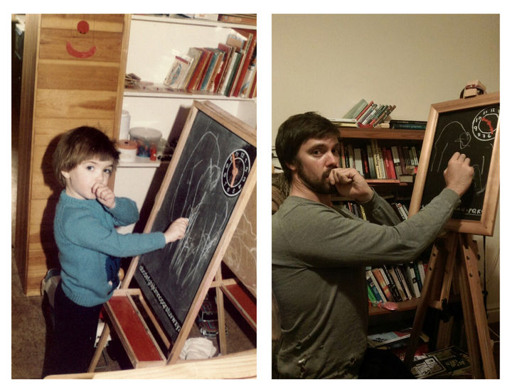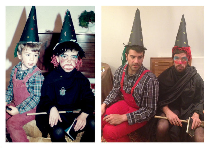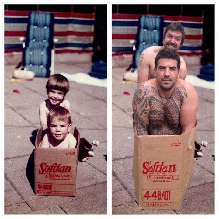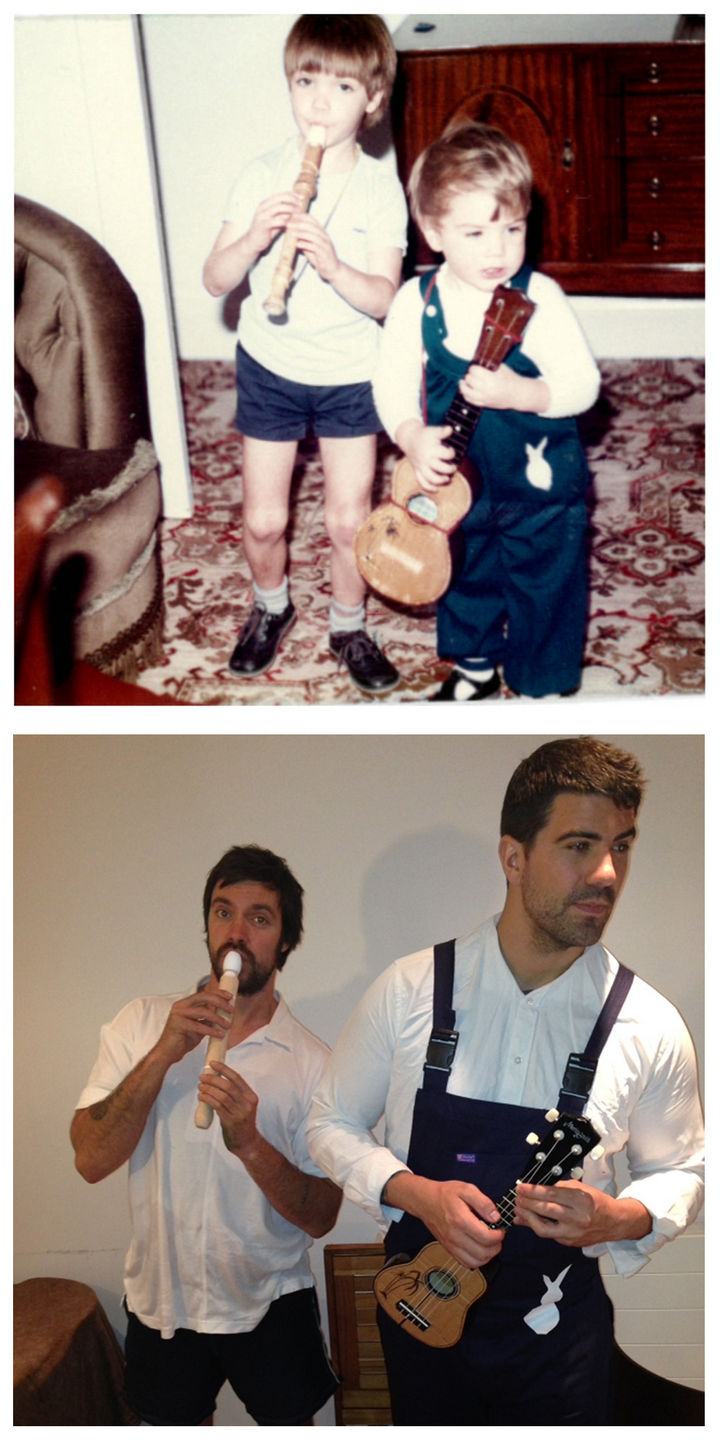 They selected memorable childhood photos from their parent’s photo albums and recreated them as adults. According to Matthew, their parents loved it “Laughter, tears…they loved it!”.
