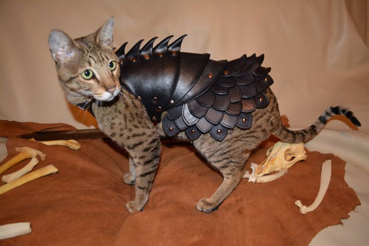 Calling all Game of Thrones fans!! If you’re a fan of Game of Thrones and also a cat owner, you might be interested in this custom-built armor harness for your feline friend. Battle armor will provide your cat with the confidence to stand up to any medieval foe!