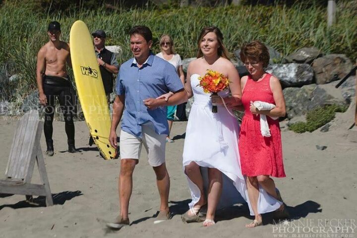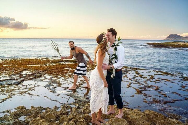 25) “Trudeau moves out of the way for a bride coming onto the beach to be married.”