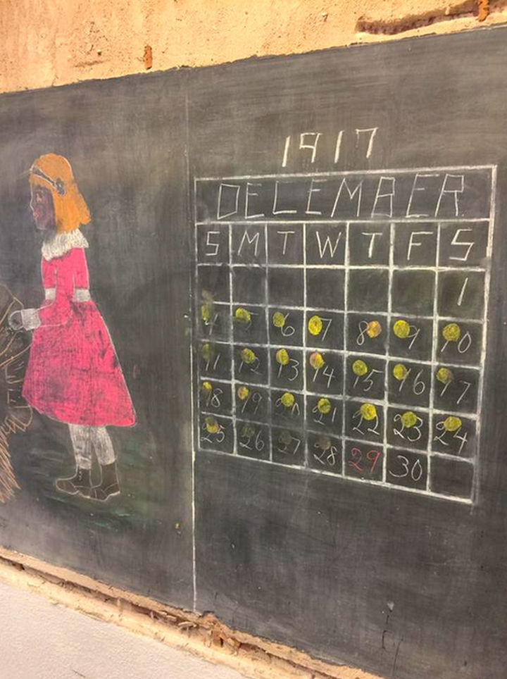 Because they were untouched, the drawings and writings look like they were drawn just yesterday. The calendar is for December, 1917.