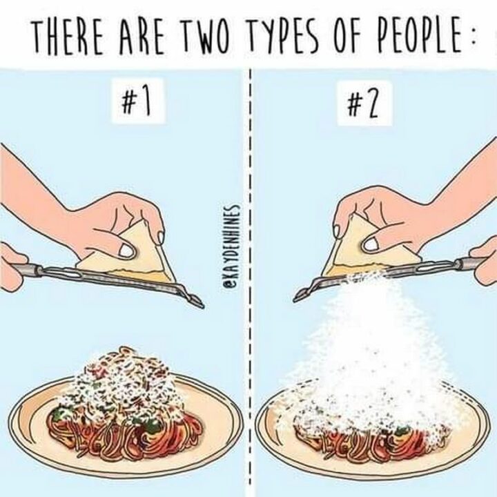 “Waiter: *grating cheese* say when. Me: Waiter: Sir that was the entire block of cheese. Me: *leans in way too close* Go get another.”