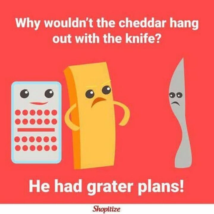 “Why wouldn’t the cheddar hang out with the knife? He had grater plans!”