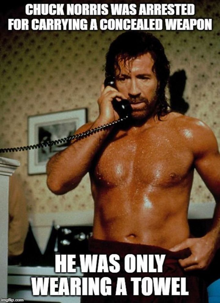 “Chuck Norris was arrested for carrying a concealed weapon. He was only wearing a towel.”