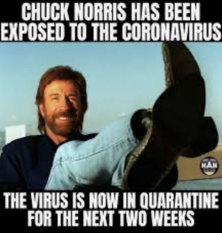 “Chuck Norris has been exposed to the coronavirus. The virus is now in quarantine for the next two weeks.”