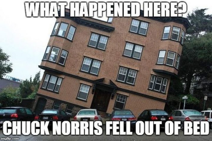 “What happened here? Chuck Norris fell out of bed.”