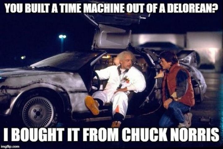 “You built a time machine out of a DeLorean? I bought it from Chuck Norris.”