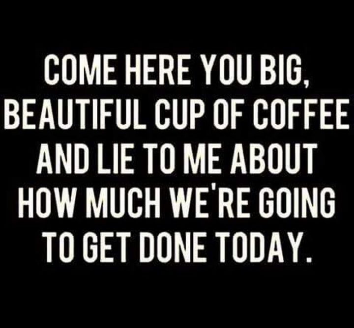 “Come here you big, beautiful cup of coffee, and lie to me about how much we’re going to get done today.”