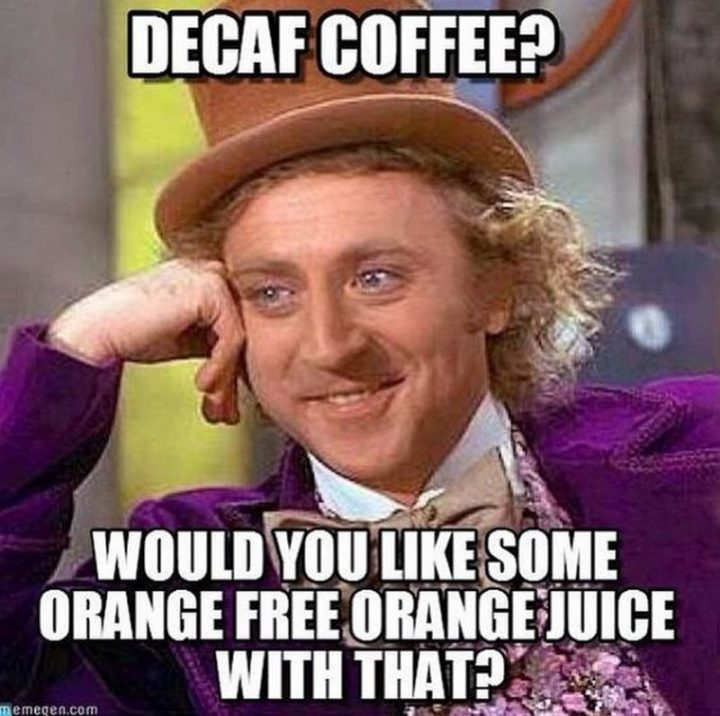 “Decaf coffee? Would you like some orange-free orange juice with that?”