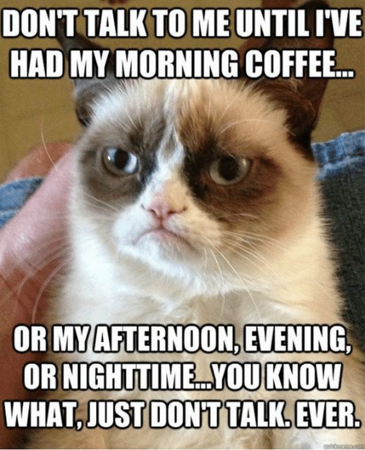 “Don’t talk to me until I’ve had my morning coffee…Or my afternoon, evening, or nighttime…You know what, just don’t talk. Ever.”