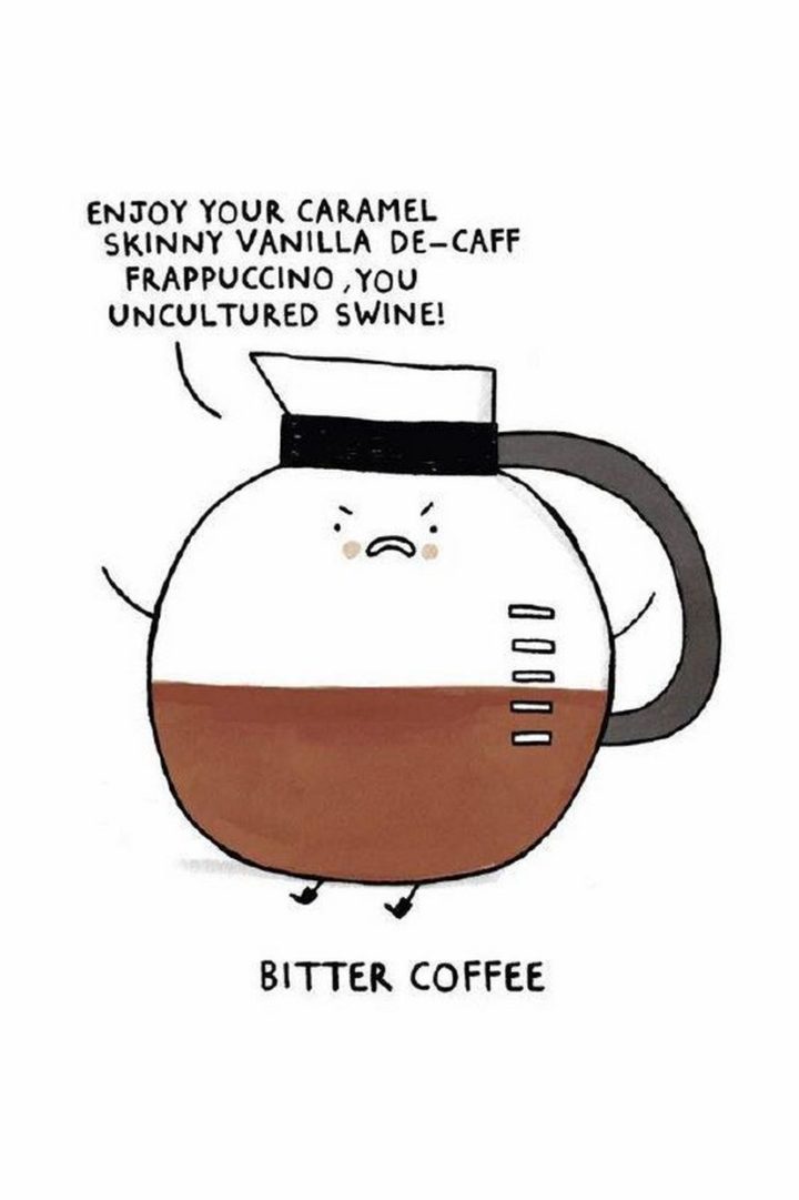 “Bitter coffee: Enjoy your caramel skinny vanilla decaf frappuccino, you uncultured swine!”