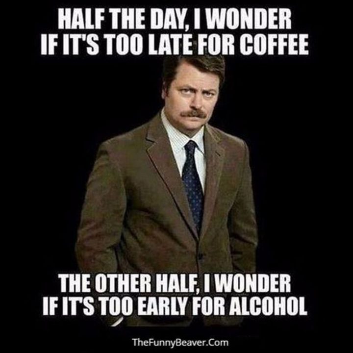 “Half the day, I wonder if it’s too late for coffee. The other half, I wonder if it’s too early for alcohol.”