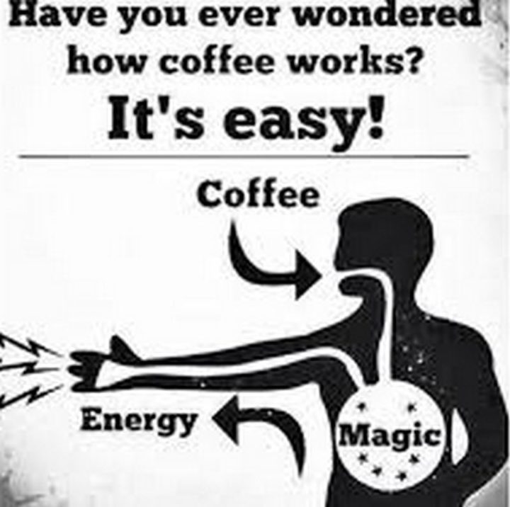 “Have you ever wondered how coffee works? It’s easy! Coffee + Magic = Energy.”