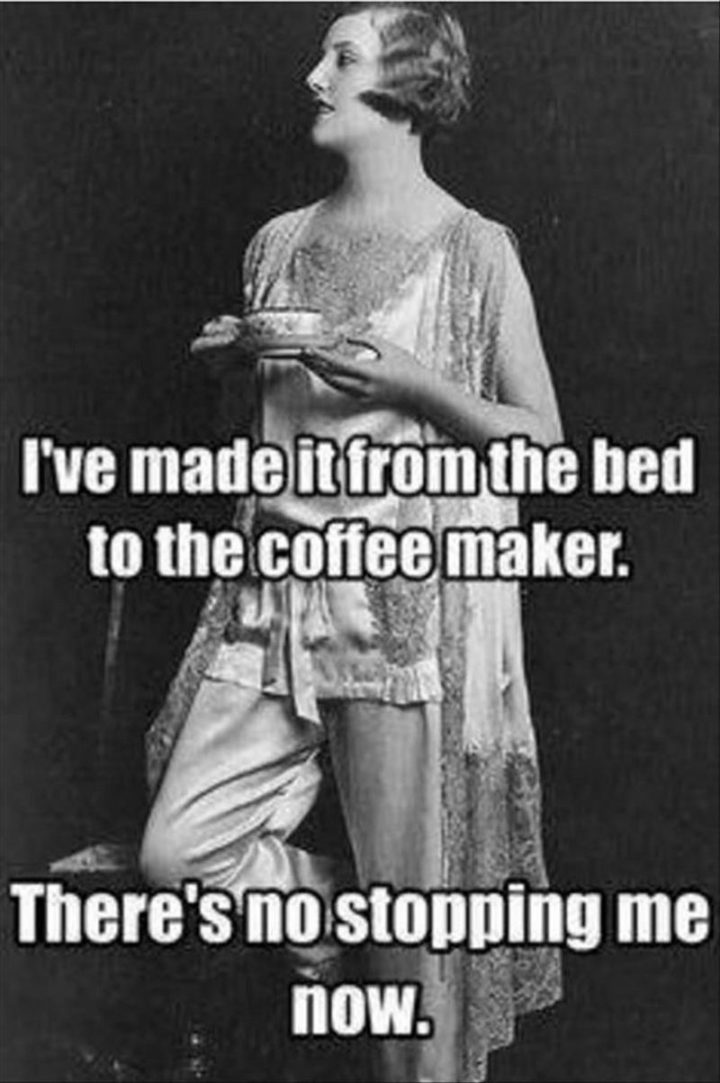 “I’ve made it from the bed to the coffee maker. There’s no stopping me now.”