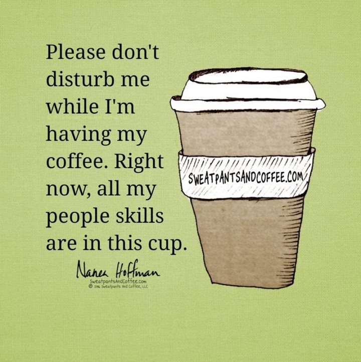 “Please don’t disturb me while I’m having my coffee. Right now, all my people skills are in this cup.”