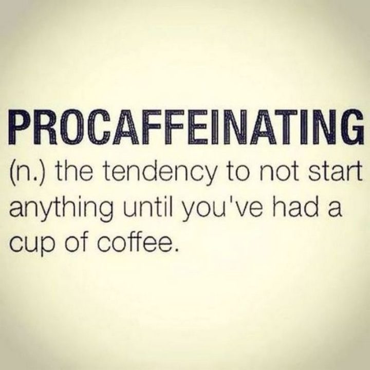 “Procaffeinating: The tendency to not start anything until you’ve had a cup of coffee.”
