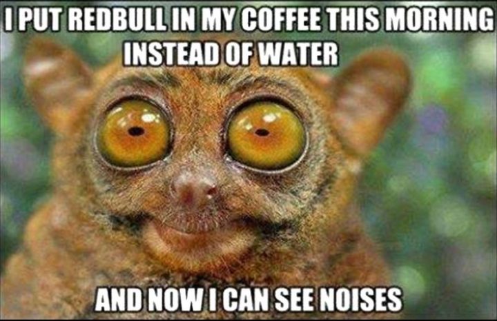 “I put Red Bull in my coffee this morning instead of water and now I can see noises.”