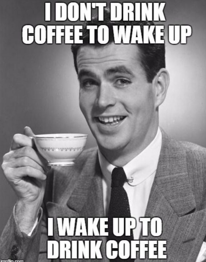 “I don’t drink coffee to wake up. I wake up to drink coffee.”
