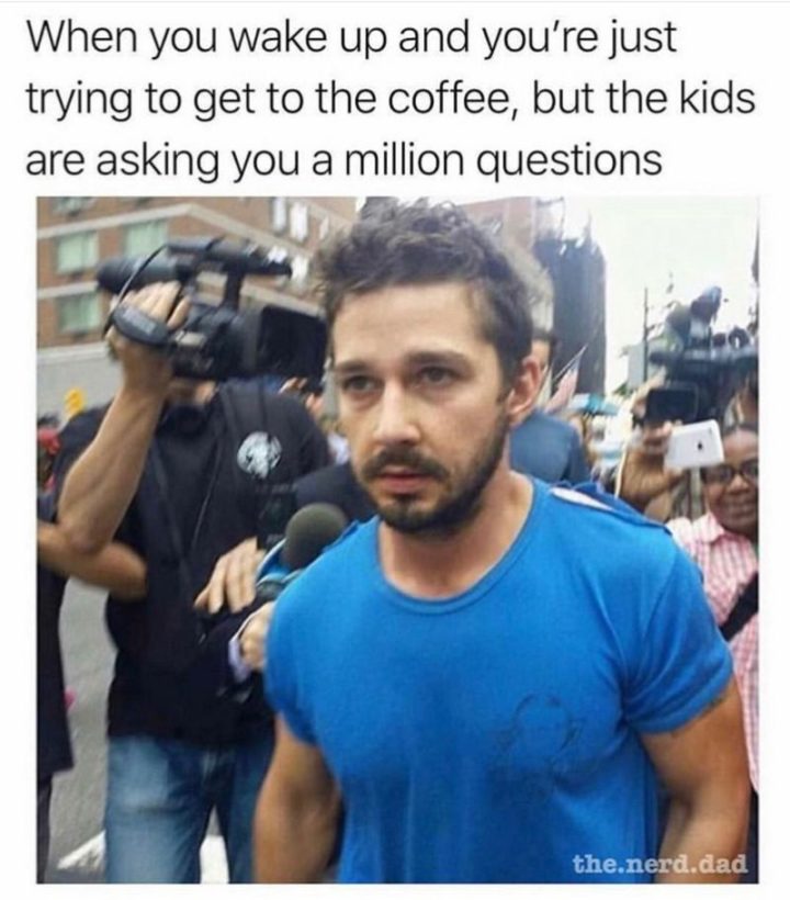 “When you wake up and you’re just trying to get to the coffee, but the kids are asking you a million questions.”