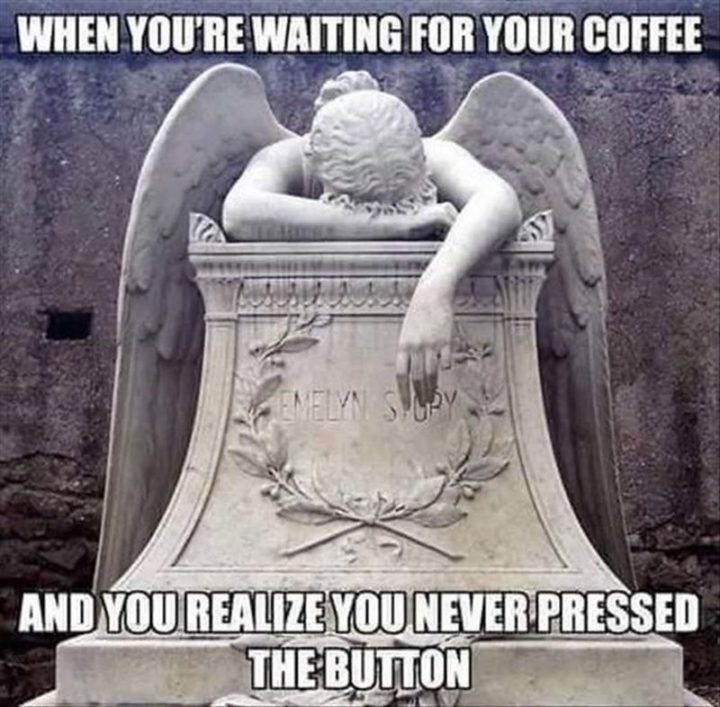 “When you’re waiting for your coffee and you realize you never pressed the button.”