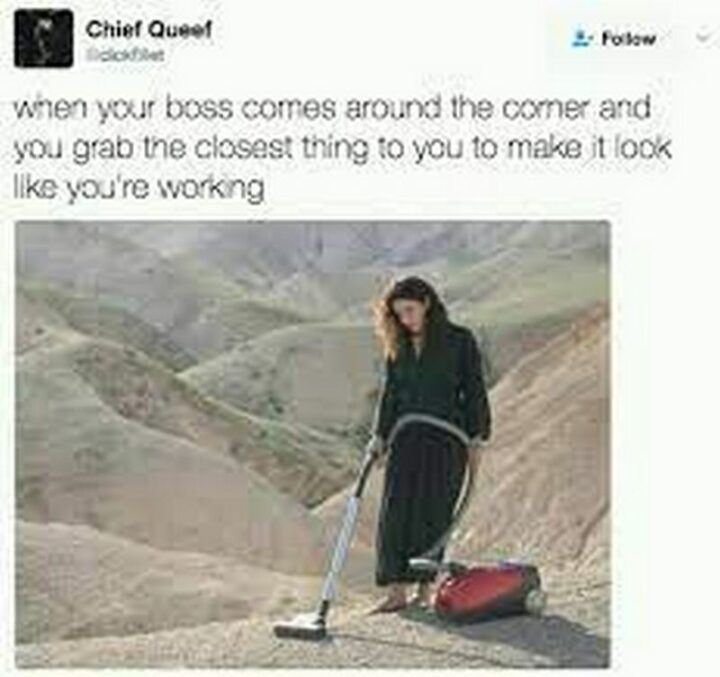 “When your boss comes around the corner and you grab the closest thing to you to make it look like you’re working.”