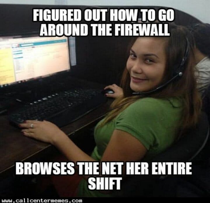 “Figured out how to go around the firewall. Browses the net her entire shift.”