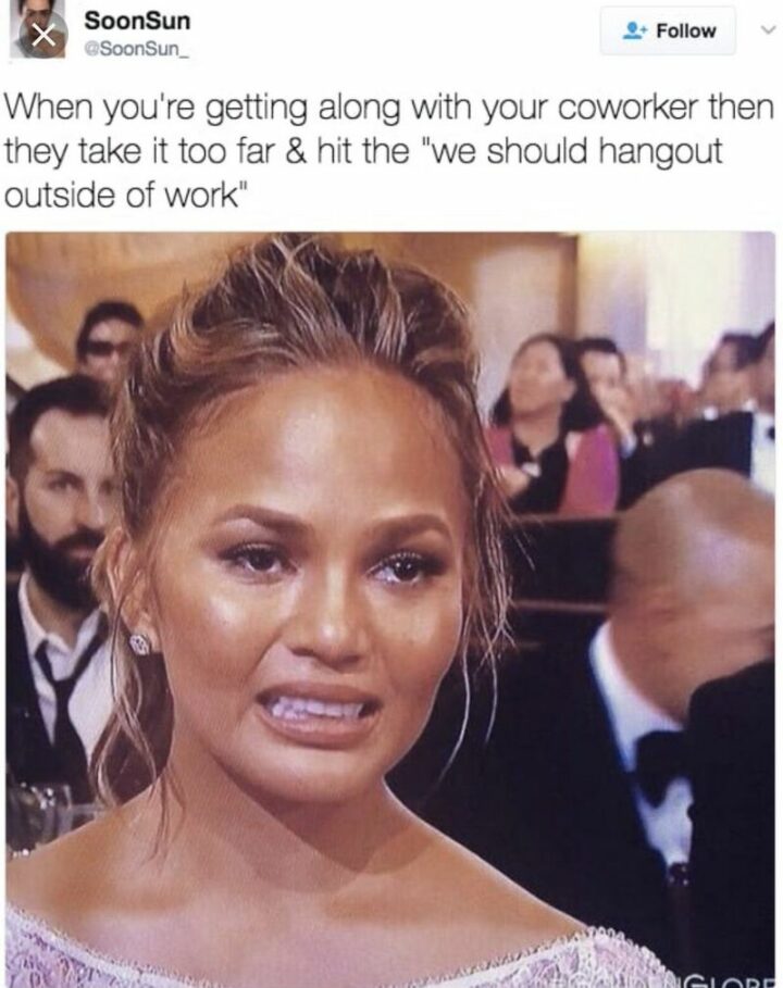 “When you’re getting along with your coworker then they take it too far and hit the ‘We should hang out outside of work’.”