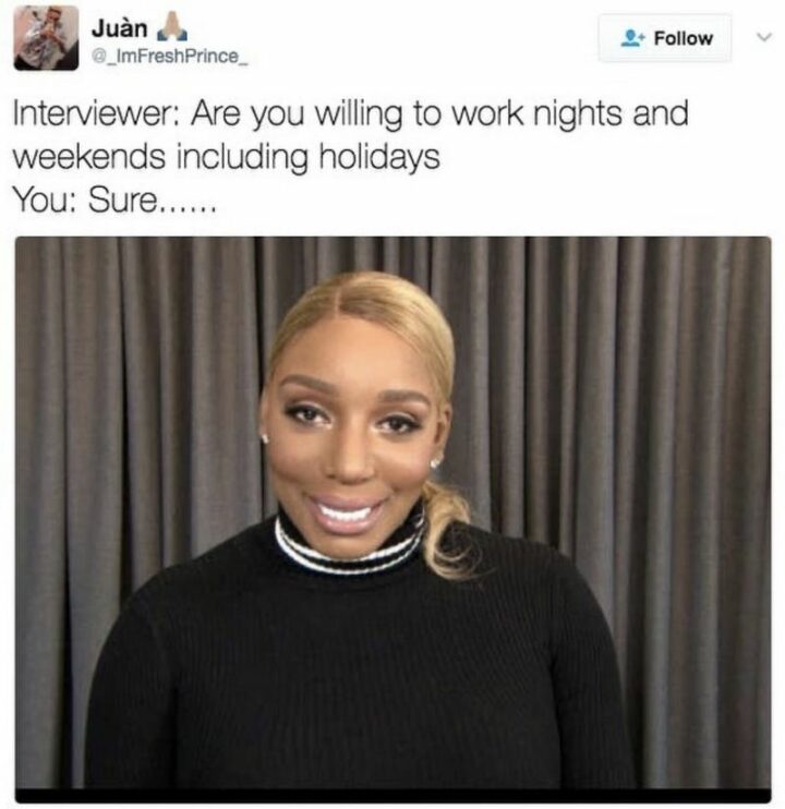 “Interviewer: Are you willing to work nights and weekends including holidays. You: Sure…”