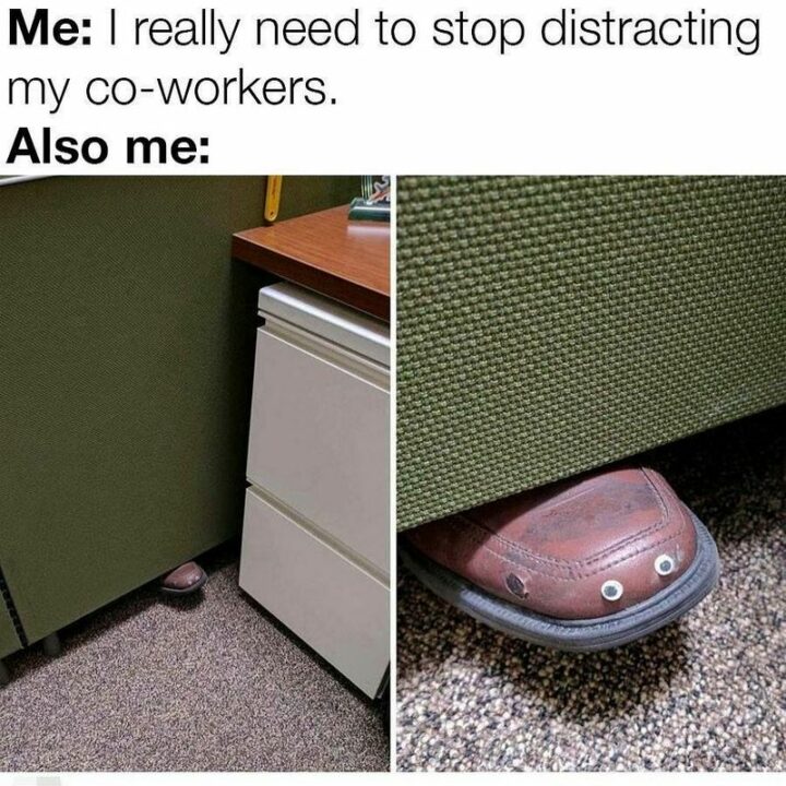 “Me: I really need to stop distracting my co-workers. Also me:”
