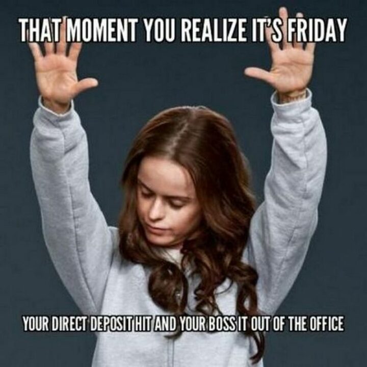 “That moment you realize it’s Friday, your direct deposit hits, and your boss is out of the office.”