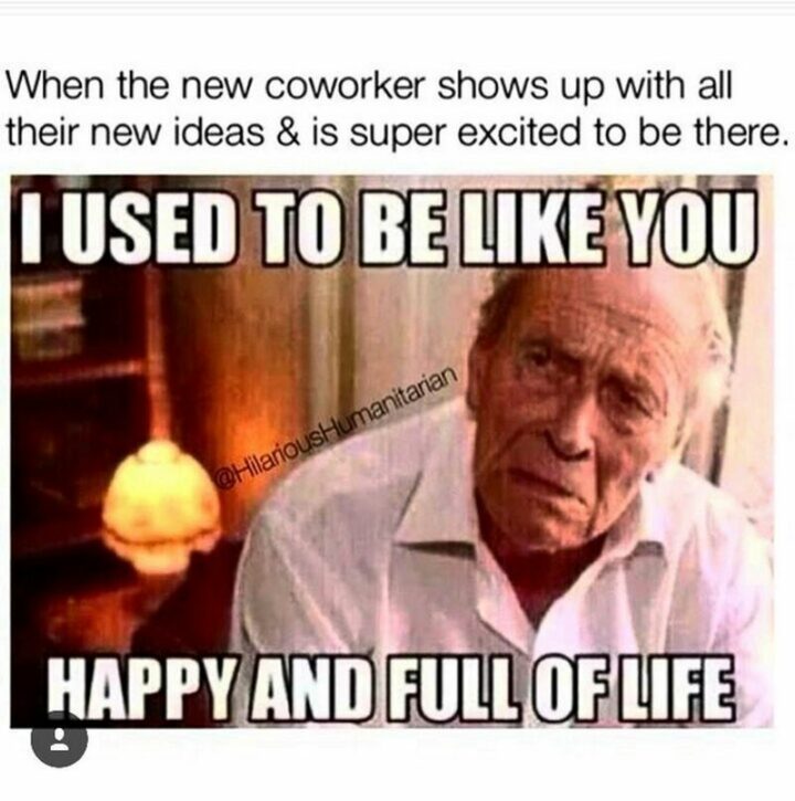 “When the new coworker shows up with all their new ideas and is super excited to be there: I used to be like you, happy and full of life.”