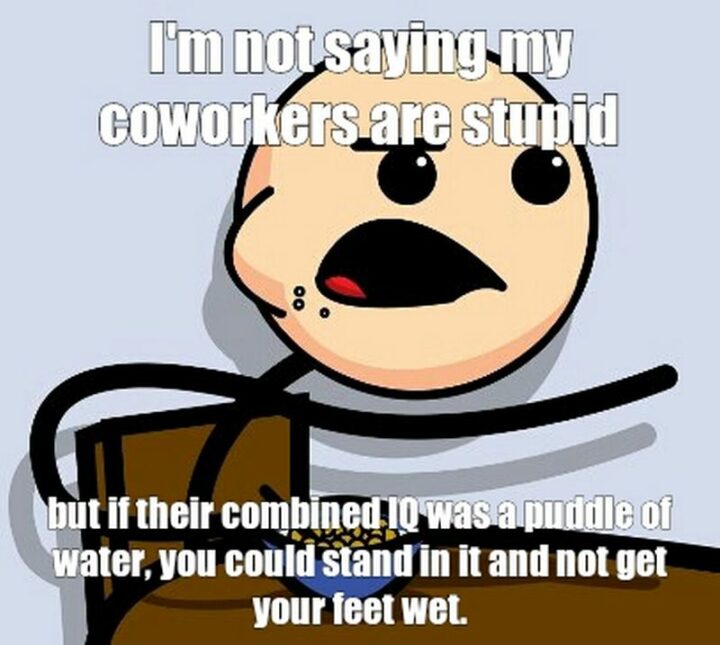 “I’m not saying my coworkers are stupid but if their combined IQ was a puddle of water, you could stand in it and not get your feet wet.”