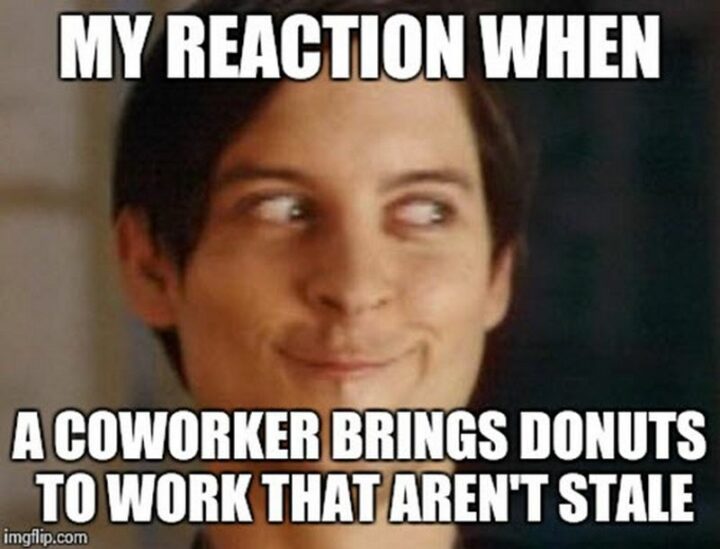 “My reaction when a coworker brings donuts to work that aren’t stale.”
