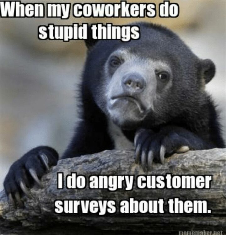 “When my coworkers do stupid things, I do angry customer surveys about them.”
